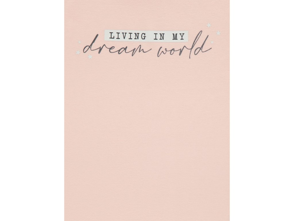 - na předním dílu třpytivý nápis Žiju ve světě svých snů
